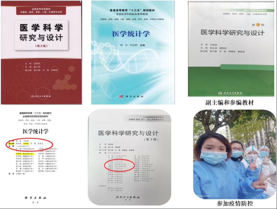 教研室老师现主持校教改项目一项,参加教学改革项目多项。在所有的课程里面均实施了-定比例的CBL等教学改革授课方式,在《流行病学》实验课中还开展了情景模拟式教学,取得了较好的效果。近年在国内外相关期刊上发表了教改论文6篇,其中1篇被美国教育部数据库收录。此外,教研室老师还副主编人民卫生出版社、科学出版社教材各一部,参编人民卫生出版社教材4部。