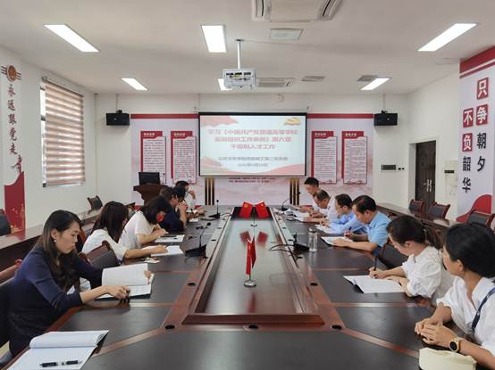 会上,公司党委委员、正处级组织员胡雪松同志带领大家一起学习了银龄微党课《黄志坚:新时代青年怎样走好成才之路》并分享了学习体会。随后,支部书记张孝刚同志领学了《中国共产党章程》(第六章 党的干部)、《中国共产党普通高等公司基层组织工作条例》(第六章 干部和人才工作)、《中国共产党支部工作条例》(第三章 基本任务)及《习近平生态文明思想学习纲要》部分内容。组织委员伍周玲同志领学了《信访工作条例》。纪律检查委员谌小立同志领学了《中华人民共和国保守国家秘密法》《关于一体推进不敢腐不能腐不想腐的指导意见》(黔党发【2022】4号)和教育部曝光7起违反教师职业行为十项准则典型案例。统战委员胡颖同志领学了《中国共产党统一战线工作条例》(第十章 海外统一战线工作和任务工作)。