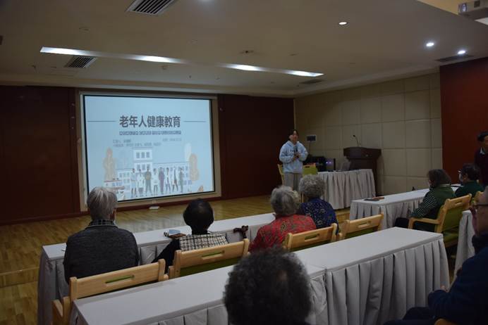 活动现场,遵义市健康教育学会、遵义贝齿蓝天口腔各位同志为中心老人进行了口腔健康义诊;刘俊同志和闫诚同志分别开展了题为有效防跌倒 笑当“不倒翁”——跌倒的预防和长寿老人“不老”秘诀的讲座,吴婧懿同学结合自己健康教育课程从老年人的营养、流感及支原体肺炎预防、心理健康和运动四个方面进行了健康宣讲。中心老人踊跃参加到各项互动活动中,全场其乐融融。