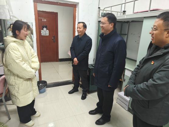 陈永正首先走访了心远社区员工公寓,实地查看了员工的宿舍条件,并与联系员工2020级预防1班汪灵婵同学亲切交谈,详细询问了她的学习、生活以及考研备考情况。陈永正鼓励她要保持积极乐观的态度,合理安排时间,并祝愿她能在即将到来的硕士研究生考试中取得优异成绩。