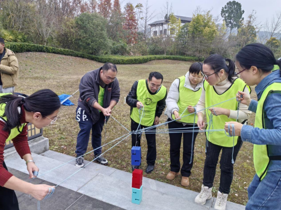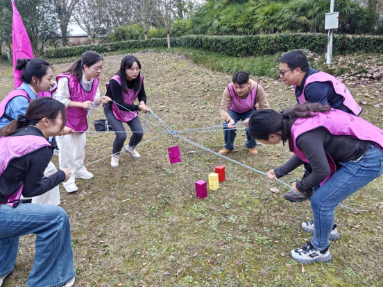 活动第一阶段为集中学习,公司党委书记张在金领学了党的二十届四中全会公报的主要内容,公司党委副书记、工会主席王红卫带领全体会员深入学习《习近平总书记关于工人阶级和工会工作的重要论述》的部分内容。第二阶段为团队拓展环节。在“友谊第一、比赛第二”的融洽氛围中,现场组建的四支队伍逐一亮相,分别展示团队名称及口号,并在拓展教练的组织下进行了破冰游戏。随后,在活动教练和裁判员的统一指挥下,依次开展了“疯狂赛道”“蒙眼互打”“合力筑塔”等多项富有协作性、趣味性的拓展项目。队员们全情投入、各展所长,既有默契配合,也有智慧碰撞,在团结协作中力争上游。现场助威声、欢呼声、笑语声此起彼伏,始终洋溢着热烈而欢乐的活跃气氛。