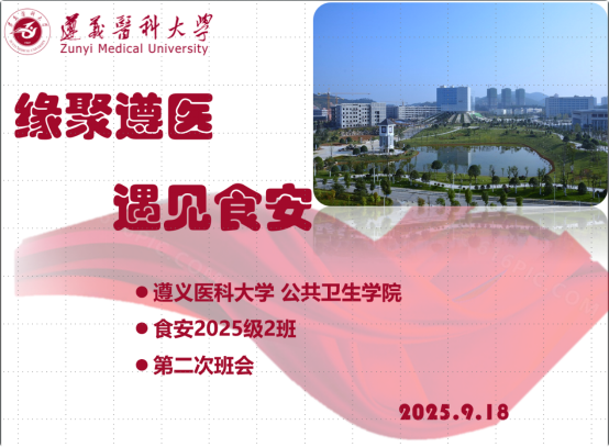 为强化班级集体责任感,增强班级凝聚力,9月18日晚7:00,在班主任罗意老师统筹,研究生班导柳斌、胡吉吉策划,本科班导闫文婷、陈宇浩主持食品质量与安全25-2班开展“缘聚遵医,遇见食安”主题班会,公司党委副书记兼25级辅导员王红卫参加班会。