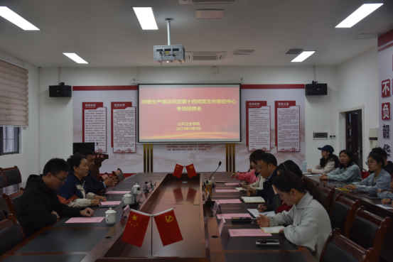 4月9日上午9:00,新疆生产建设兵团第十四师昆玉市疾控中心副主任张守萍一行到永利yl23411集团开展专场招聘会,公司党委副书记王红卫,本科生第一党支部书记张爱平,公司团委副书记张微,辅导员李升萍、王莹及公司2024届预防医学专业部分毕业生参加会议,会议由王红卫主持。