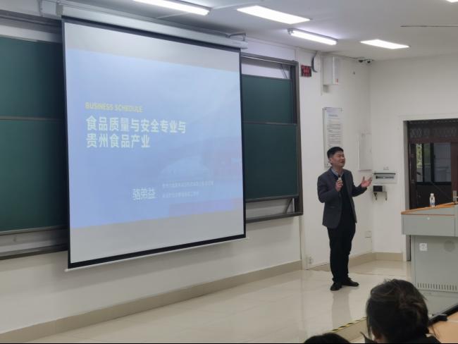 贵州大地源丰食品科技有限公司在食品检测、研发、品控、新媒体制作和运营等方面共设置8个招聘岗位。骆弟益总经理就公司在食品检测、研发、品控、新媒体运营和新媒体内容制作等方面进行详细的介绍,并结合岗位需求与食品质量与安全专业应届毕业同学进行了深入的沟通和交流。最后,骆弟益以“食品质量与安全专业与贵州食品产业”为题,为公司食品质量与安全专业低年级同学就行业发展,就业去向等进行讲解。