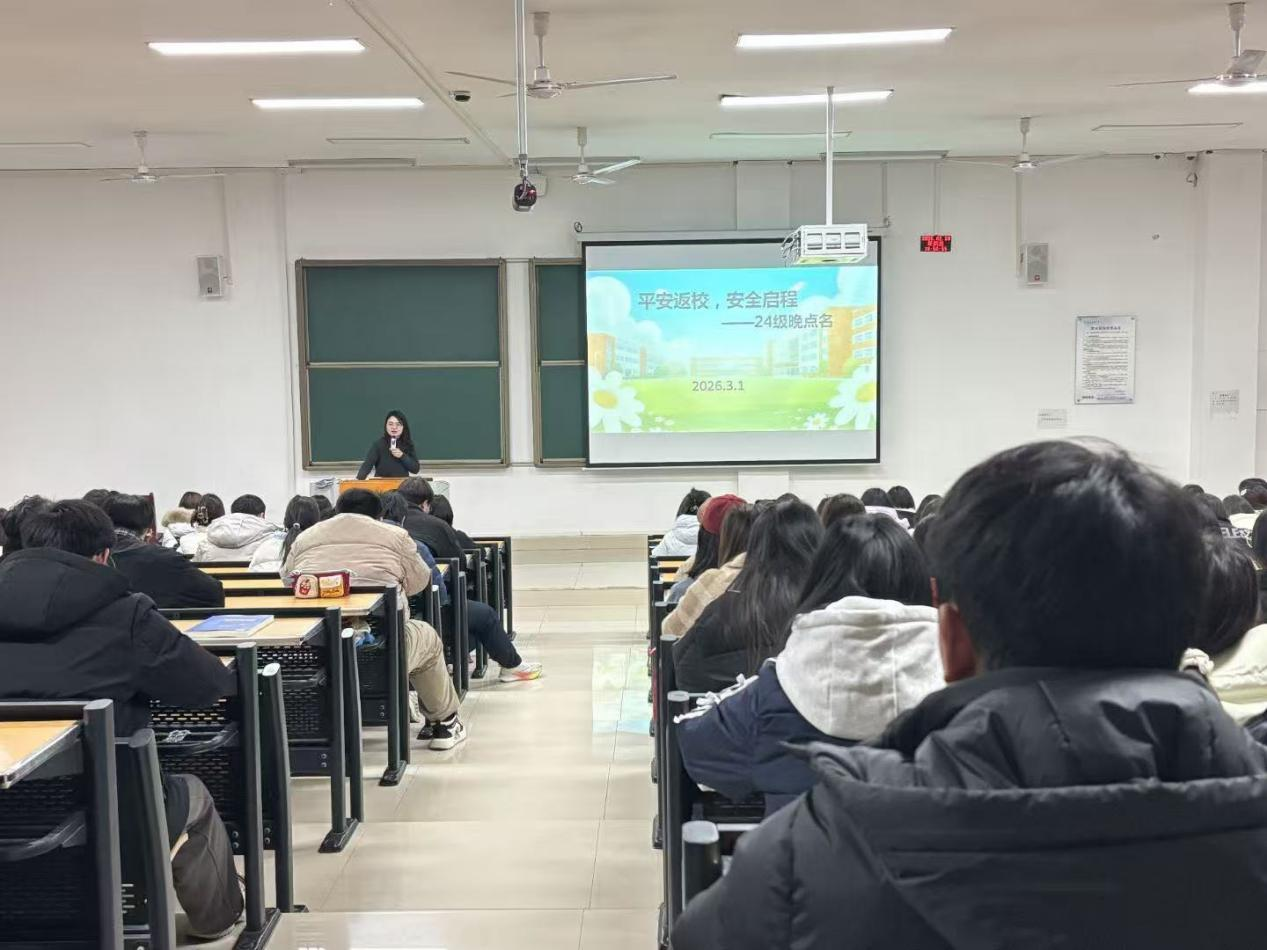 各年级辅导员精心组织新学期第一次晚点名班会,通过前期摸排和家校联系再一次逐一确认员工返校情况,并对未返校员工原因进一步核实。同时,围绕新学期规划、校园安全、心理健康等内容进行开学前的教育,引导同学们迅速调整状态,以良好的精神投入新学期中。