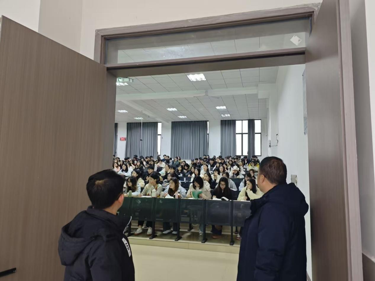 开学第一天,公司党委副书记王红卫、副经理石修权率领公司全体辅导员深入一、二、三号教学楼,检查公司员工出勤率、课堂秩序及精神面貌。从巡查情况看,任课教师准备充分,员工出勤率高、听讲认真、互动积极,课堂秩序井然,展现了新学期良好学习风貌。