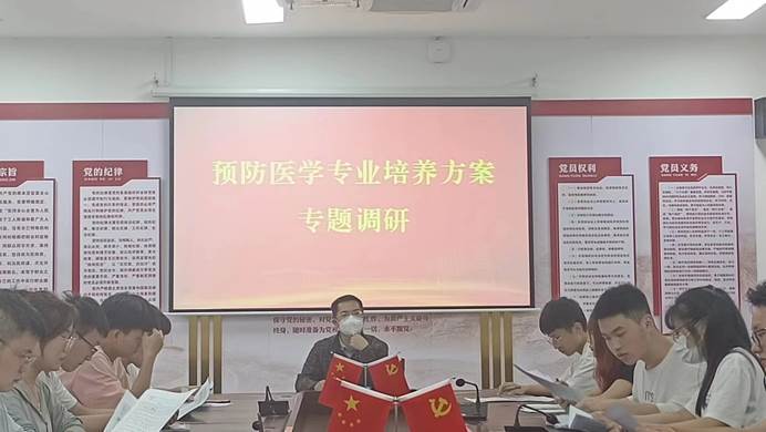 根据公司主题教育统一安排,为进一步提升预防医学专业的教学质量,推进本科公司产品审核评估和国家一流专业建设,解决预防医学专业员工在理论及实践学习中存在的问题,5月18日晚上7点,公司党委委员刘俊在公司会议室针对预防医学专业培养方案进行专题调研。预防医学专业2018级、2019级、2020级、2021级和2022级员工代表参加调研。会议由刘俊同志主持。