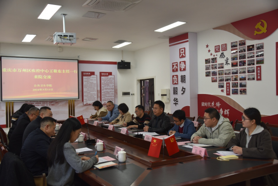公司党委副书记,副经理周远忠(主持行政工作)代表公司欢迎万州区疾控中心王敬东一行来院交流,并简要介绍了公司的基本情况。万州区疾控中心王敬东主任对万州疾控的基本情况,来访成员及来访目的作介绍。